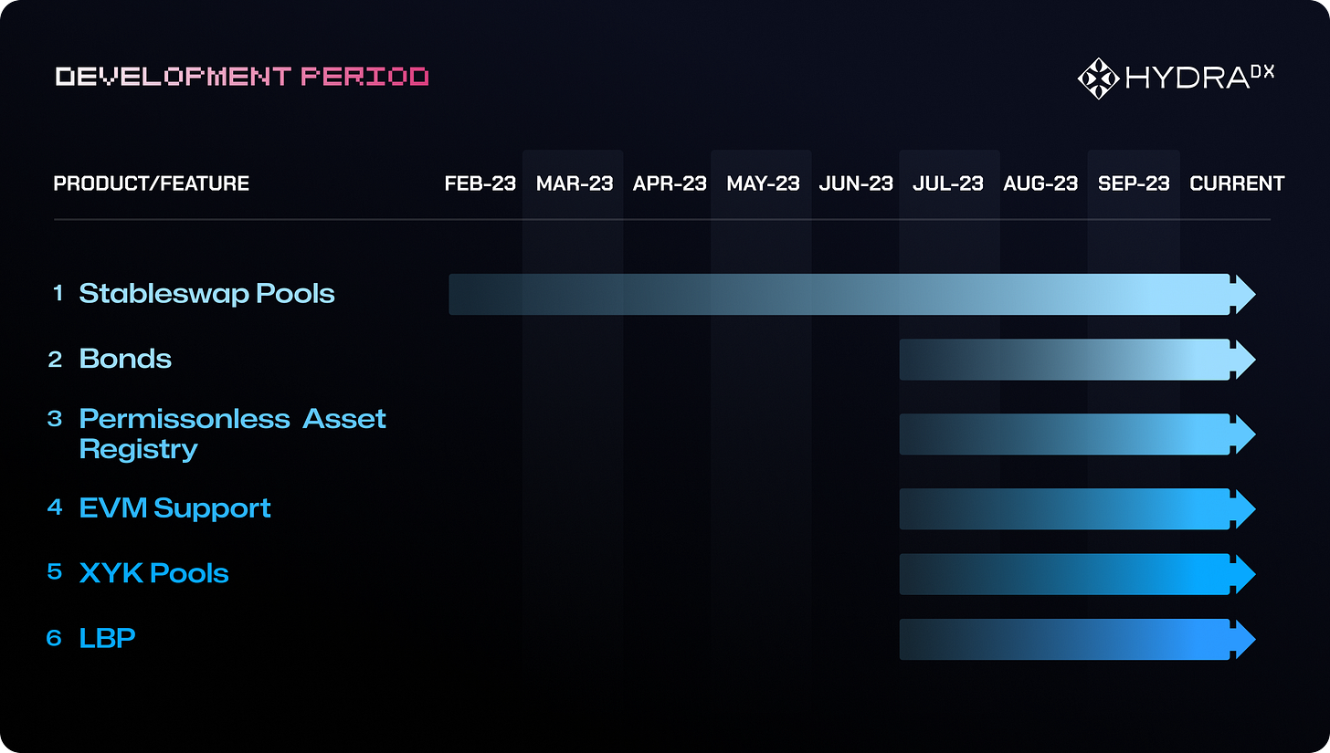Текущий статус: Реализация runtime, ноды HydraDX и пользовательского интерфейса в процессе.